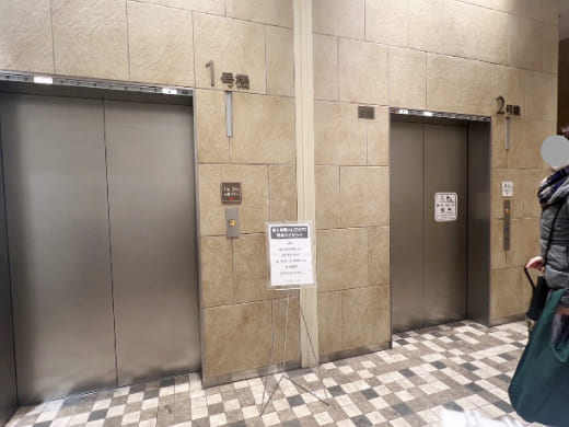 地下1F、1Fどちらも2号機(奥側)のエレベーターをご使用ください。